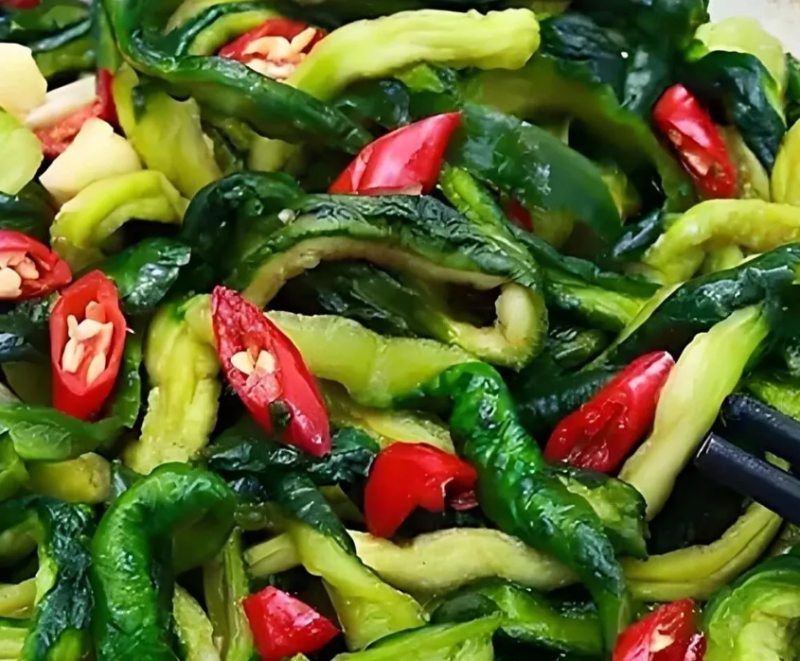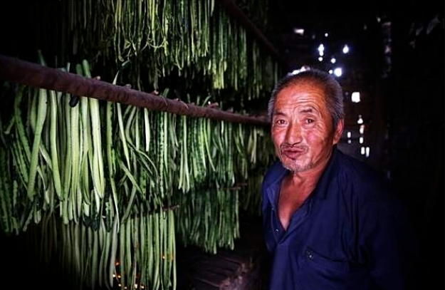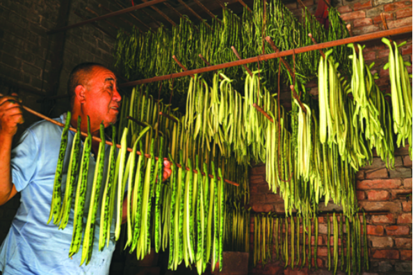 先以特制工具削去黃瓜外皮、順長分四條,再置于架桿上用50℃爐火烘烤一晝夜;烤后扎起密封入缸或裝袋封口,既實現(xiàn)長期存放,又留存本味,每一步皆為鎖住黃瓜干的脆嫩質(zhì)感。