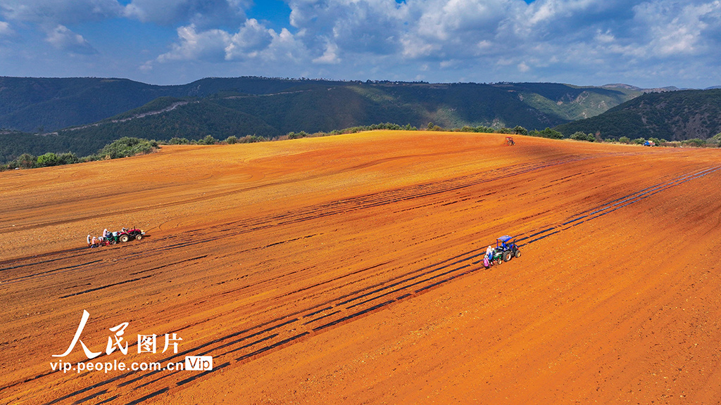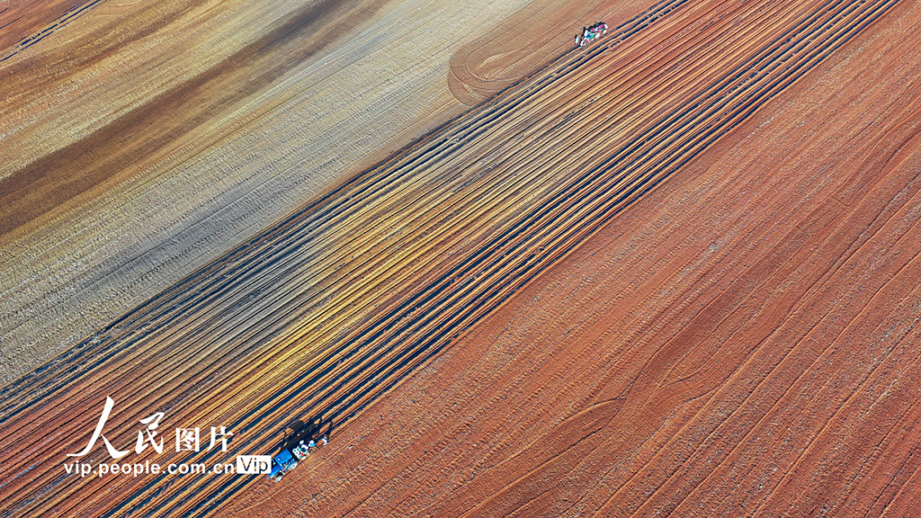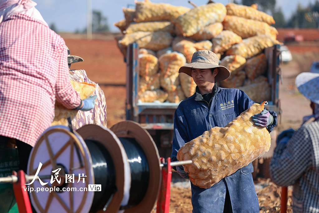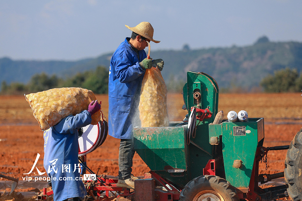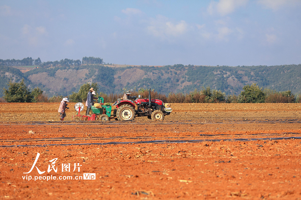 2026年1月12日,在云南曲靖陸良縣小百戶鎮(zhèn)普樂村馬鈴薯基地,農(nóng)民正利用晴好天氣駕駛農(nóng)機(jī)播種小春馬鈴薯。陸良壩子是云南第一大平壩,光熱水土條件優(yōu)越,馬鈴薯種植可實現(xiàn)一年三熟。小百戶鎮(zhèn)馬鈴薯種植面積9.15萬畝,當(dāng)?shù)卮罅ν茝V機(jī)械化、高壟栽培、水肥一體化、綠色防控等技術(shù),以科技助推產(chǎn)業(yè)提質(zhì)增效,持續(xù)壯大馬鈴薯產(chǎn)業(yè)。王勇 攝(人民圖片網(wǎng))