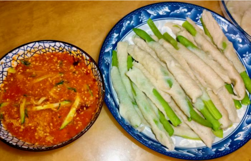 在漫長的歲月里,這道最初為了度饑荒而誕生的食物,逐漸融入了清徐人的日常生活,成為當(dāng)?shù)厝瞬妥郎系某?汀H藗冊谥谱鬟^程中不斷摸索改進(jìn),從食材的選擇,到面粉與蔬菜的比例搭配,再到煮制的火候和時間,每一個細(xì)節(jié)都經(jīng)過了無數(shù)次的嘗試與優(yōu)化。搭配的蘸料也從簡單的鹽醋,演變成蒜香、醬香、酸甜等多種口味融合的復(fù)雜配方,蘸料中的蒜末增添了辛辣刺激,濃郁的醬料賦予醇厚口感,若是加入酸甜的西紅柿醬,更能激發(fā)食材的鮮美,讓每一口都層次豐富,回味無窮 。