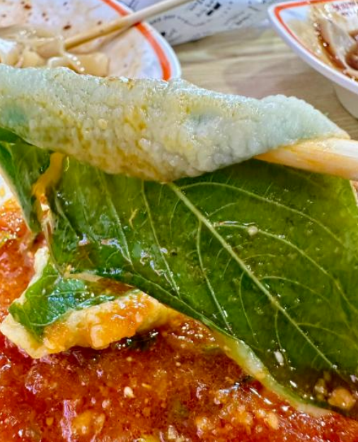 玉谷葉本身帶著清新的草木香氣,裹上面粉后,那股清香被牢牢鎖住,還多了幾分綿軟的口感;豆角原本脆嫩,經(jīng)過煮制,變得軟糯卻又不失韌勁,蛋液和面粉的包裹讓它多了一層柔滑的外皮;土豆在這個過程中,吸收了蛋液的鮮香和面粉的麥香,粉糯的質(zhì)地和面衣相互交融,帶來豐富的口感體驗。搭配西紅柿蘸料,一口下去,既有蔬菜的清爽、土豆的粉糯,又有蘸料的濃郁風(fēng)味,是童年記憶里最難忘的美味,也是老街巷中煙火氣息的溫暖象征。