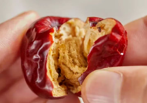 稷山板棗外觀辨識度高,成熟后呈不規(guī)則扁圓形,握感飽滿緊實。表皮未熟時淺紅帶白霜,成熟后深紅如瑪瑙,光滑細膩無粗糙感。板棗的口感層次鮮明,入口軟糯細膩無纖維感,甜度溫和不齁,65%-70%的糖分以果糖、葡萄糖為主,嚼時有淡淡棗香與清甜。咽下后回甘持續(xù) 1-2分鐘,余味悠長。相較新疆灰棗的緊實、陜北狗頭棗的甜膩,它更軟糯適中,鮮食、熬煮皆佳,適配各類人群與場景。