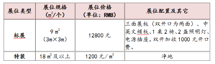 展位價格: