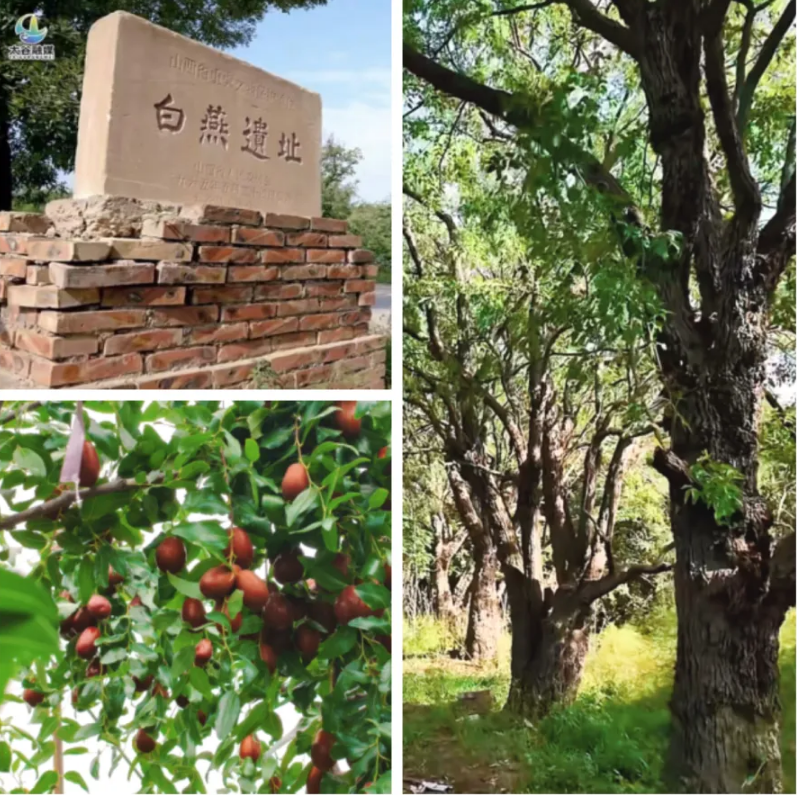 至今太谷境內(nèi)仍完好留存著3000余株樹齡超百年的古棗樹。位于太谷白燕遺址箕園中名為“棗皇”“棗后”“棗妃”三棵古棗樹,樹圍達3米以上,樹齡超千年,樹干粗壯、枝丫蒼勁,樹皮紋路如歲月勛章。每年棗花盛開時滿樹芬芳,秋季碩果累累,不僅是壺瓶棗種植史的“活見證”,更成為獨特的生態(tài)景觀與文化地標,吸引游客打卡,感受千年棗文化的厚重。