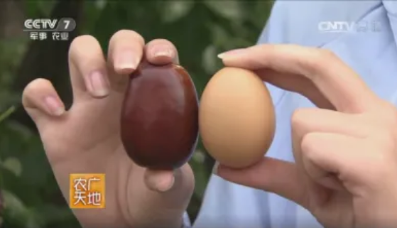 從外形上看,果實呈倒卵形,上細下粗,酷似古代酒器“壺瓶”,這一只只小小的“紅釉瓶”辨識度極高;單果重可達25~30克,最大達35克,比普通紅棗重5~10克,拿在手中沉甸甸的,大果甚至比雞蛋還大(小果2~3厘米、中果3~5厘米、大果5~6厘米),拿在手中滿是扎實感。