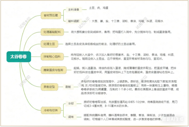 這位同學(xué)的調(diào)研圍繞太谷卷卷展開系統(tǒng)性研究,內(nèi)容架構(gòu)完整、邏輯嚴(yán)謹(jǐn)。從美食制作工藝切入,詳細(xì)梳理主料選配、餡料調(diào)制、蒸制定型等流程,精準(zhǔn)呈現(xiàn)傳統(tǒng)技法細(xì)節(jié);隨后結(jié)合歷史傳說與晉商文化,闡明其地域文化價(jià)值;直面品牌認(rèn)知、工藝傳承、市場拓展等現(xiàn)實(shí)問題,提出分級標(biāo)準(zhǔn)建立、品牌IP打造、文旅融合等針對性解決方案,兼具實(shí)操性與前瞻性。調(diào)研既完成對傳統(tǒng)美食的深度記錄,也為其產(chǎn)業(yè)發(fā)展提供清晰路徑,對地方特色飲食文化的保護(hù)與傳承具有積極參考意義。